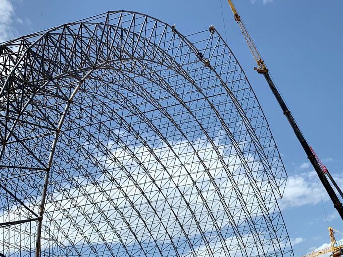 (2)网架加工前应对现场尺寸进行复测,确认无误后方可进行加工、安装;网架制作、运输、安装应遵守《空间网格结构技术规程》JGJ7-2010、《钢网架平度螺栓球节点》JG/T 10-2009、《钢网架平度螺栓球节点用高强度螺栓》 GB/T 16939-2016、《平度钢结构平度工程平度施工规范》 GB50755-2012、《平度钢结构平度工程施工质量验收标准》 GB50205-2020。